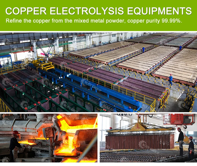 The working process starts with melting and casting scrap copper into anode plates, which are placed into electrolytic cells containing a controlled electrolyte solution. When direct current is applied, copper atoms dissolve from the anode and migrate through the electrolyte, then deposit onto stainless steel or titanium cathode plates. During this process, impurities such as iron, nickel, and precious metals are separated and collected as anode slime or remain in the solution for further treatment.