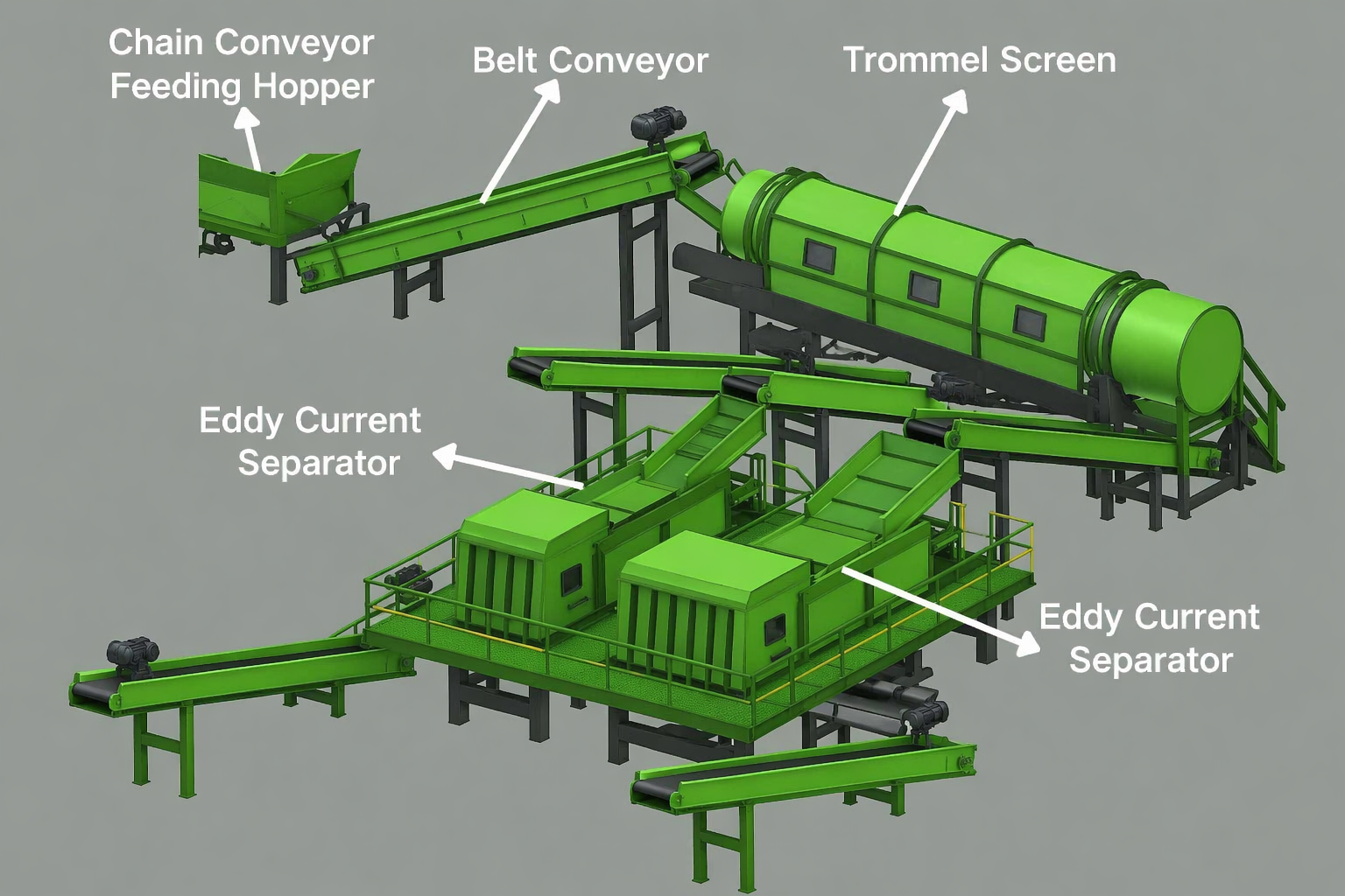 The working process of an ASR recycling plant typically involves multiple stages of separation and treatment. First, the material is fed into a shredding or crushing system to achieve uniform particle size. Then, advanced separation technologies such as magnetic separation, air classification, eddy current separation, and electrostatic separation are used to recover ferrous metals, non-ferrous metals, and lightweight materials. Each step is carefully designed to maximize recovery efficiency.