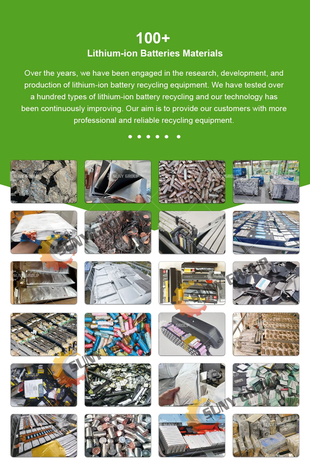 Supply of Recycling Equipment: We can provide efficient and reliable lithium battery recycling equipment, including equipment for sorting, crushing,separation,and recycling processes.